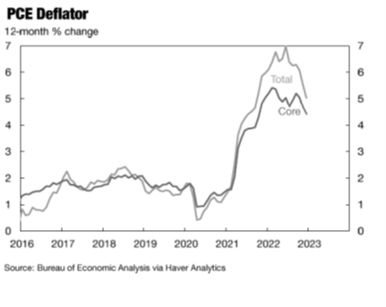 In November 2021, after being a guest on Josh Dukelow’s Fresh Take program, I posted two related pieces: one on whether inflation was temporary or not and a second on the role of monetary policy. It’s time for an update, especially since the inflation rate has risen significantly since November 2021 (see the below chart) and because the Federal Reserve has increased its target interest rate from a range of 0% to 0.25% to a range of 4.50% to 4.75% with further increases on the horizon.